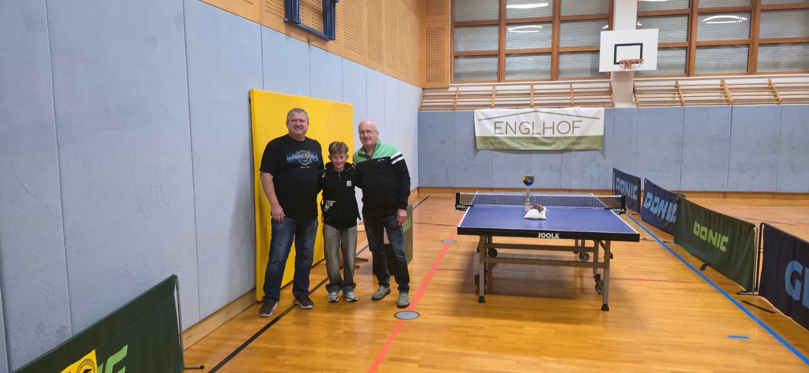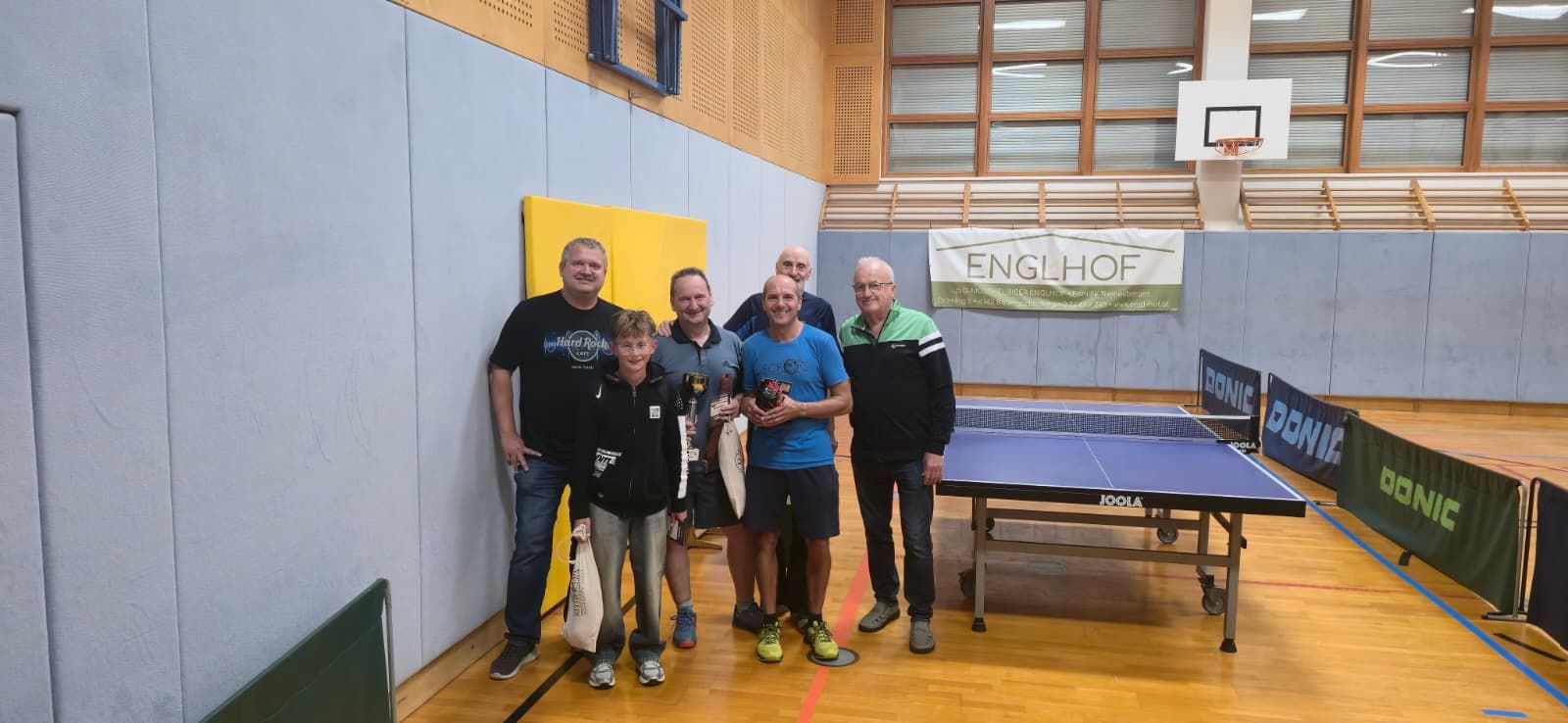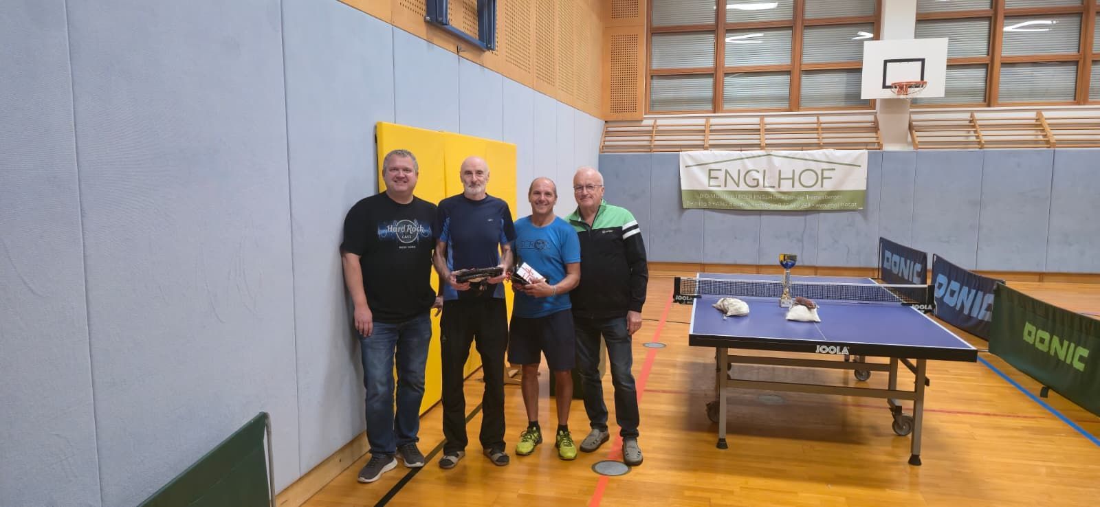 Nach einer kurzen Begrüßung und der Überreichung eines Blumenstraußes an Johanna griffen 10 Anwesende auch zum Tischtennisschläger und lieferten sich spannende Duelle an der Platte. In einem spannenden Finale konnte Hofstätter Johann mit einem Sieg über Karl Fabio seinen Vorjahrestitel verteidigen.